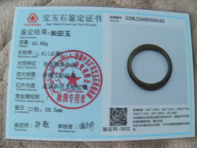 此手镯的鉴定证书照片: |