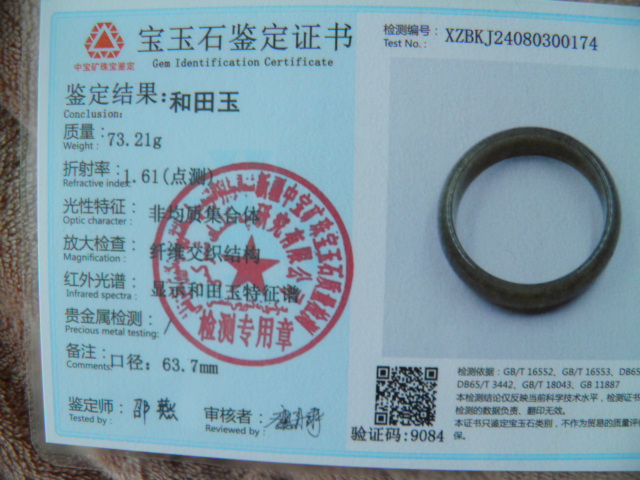 此手镯的鉴定证书照片: |