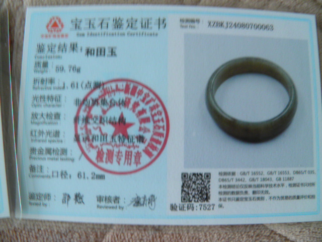 此手镯的鉴定证书照片: |