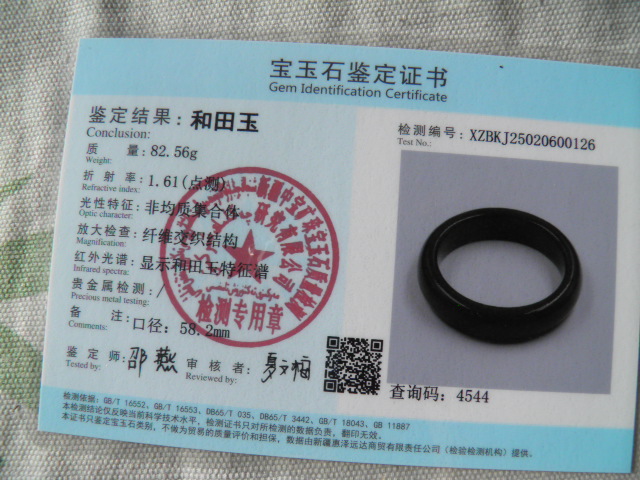 此手镯的鉴定证书照片: |