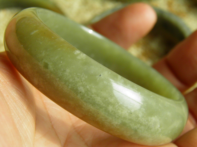 上面这个手镯:是100%纯天然和田玉手镯,所以不可能像树脂或者玻璃或者化学方法处理过的和田玉手镯那么完美。和田玉证书无人敢伪造,网络上大量廉价无暇和田玉,证书是真的但手镯已掉包,用珠宝秤就会发现重量不相符。