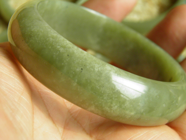 上面这个手镯:是100%纯天然和田玉手镯,所以不可能像树脂或者玻璃或者化学方法处理过的和田玉手镯那么完美。和田玉证书无人敢伪造,网络上大量廉价无暇和田玉,证书是真的但手镯已掉包,用珠宝秤就会发现重量不相符。