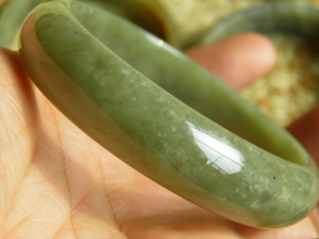 上面这个手镯:是100%纯天然和田玉手镯,所以不可能像树脂或者玻璃或者化学方法处理过的和田玉手镯那么完美。和田玉证书无人敢伪造,网络上大量廉价无暇和田玉,证书是真的但手镯已掉包,用珠宝秤就会发现重量不相符。