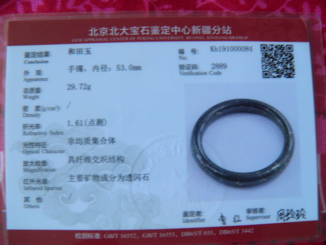此手镯的鉴定证书照片: |