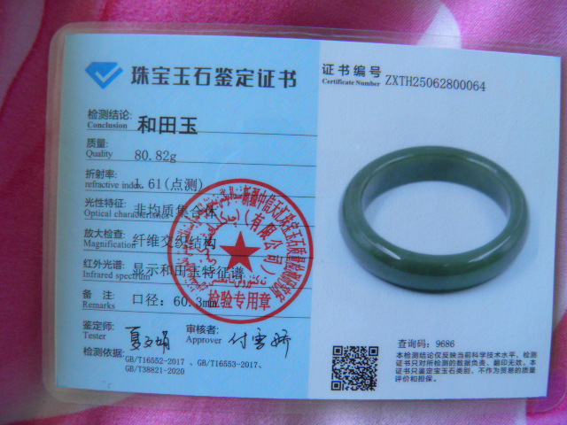 此手镯的鉴定证书照片: |