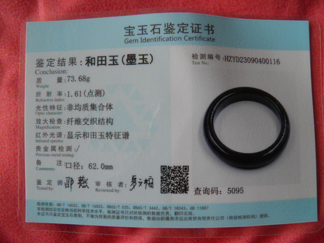 此手镯的鉴定证书照片: |