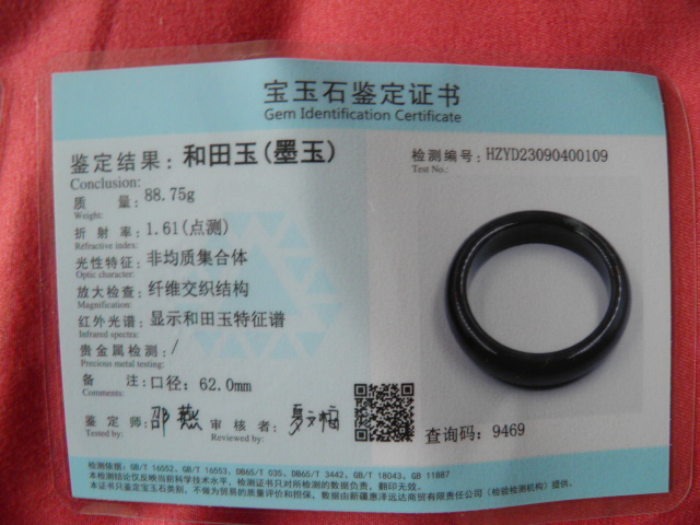 此手镯的鉴定证书照片: |