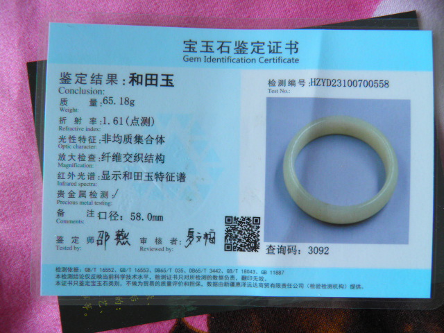 此手镯的鉴定证书照片: |