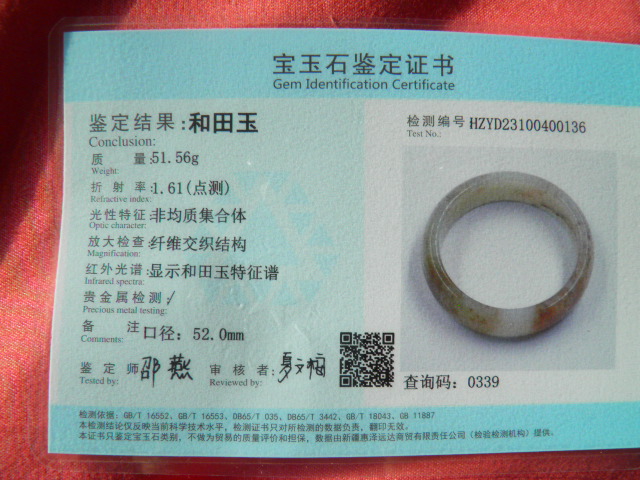 此手镯的鉴定证书照片: |