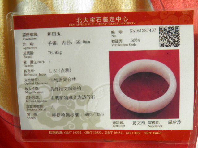 此手镯的鉴定证书照片: |