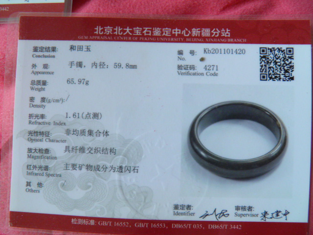 此手镯的鉴定证书照片: |