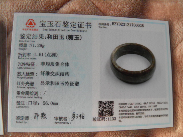 此手镯的鉴定证书照片: |