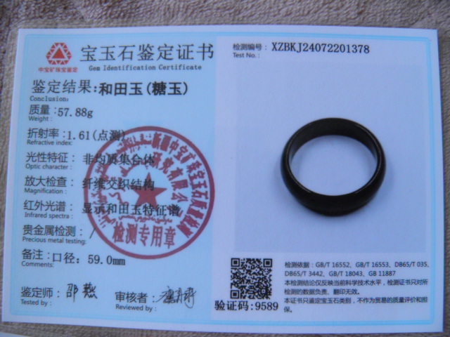 此手镯的鉴定证书照片: |