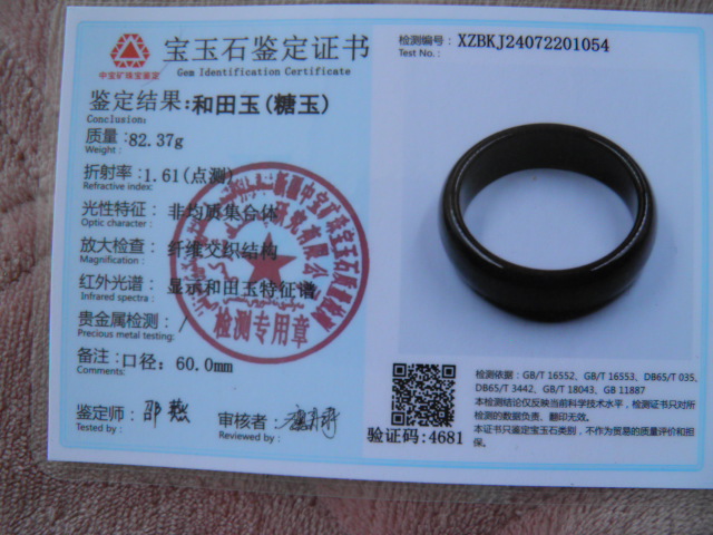 此手镯的鉴定证书照片: |