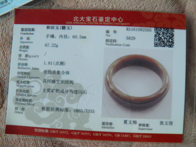 此手镯的鉴定证书照片: |