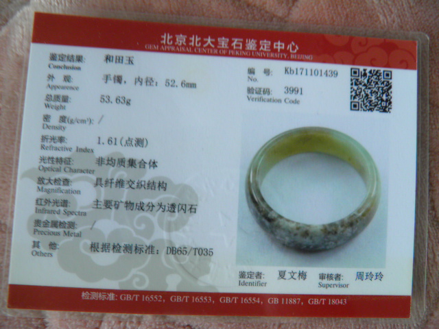 此手镯的鉴定证书照片: |
