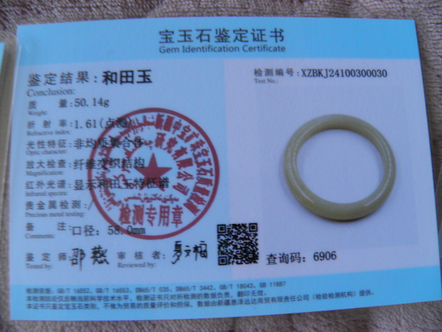 此手镯的鉴定证书照片: |