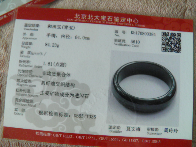 此手镯的鉴定证书照片: |