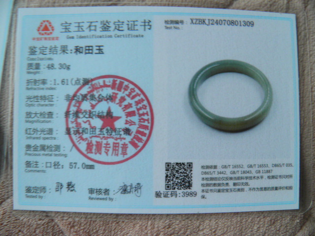 此手镯的鉴定证书照片: |