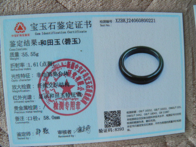 此手镯的鉴定证书照片: |