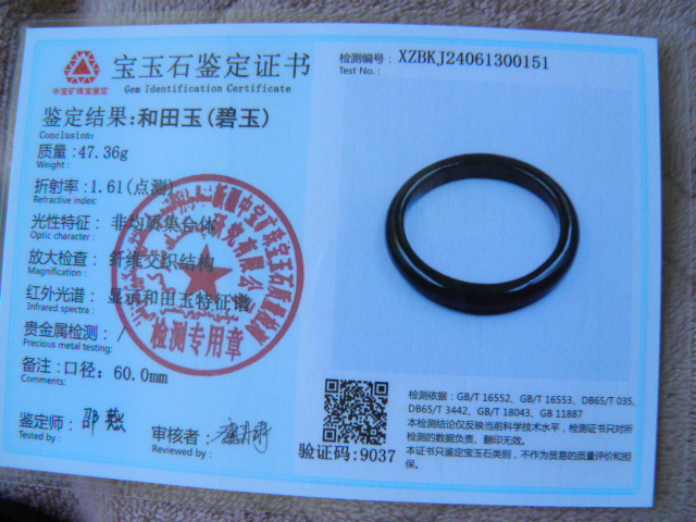 此手镯的鉴定证书照片: |