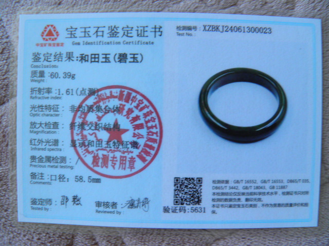 此手镯的鉴定证书照片: |