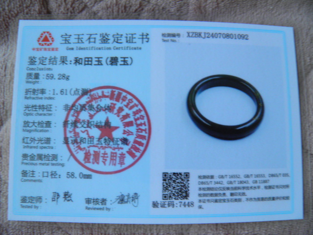 此手镯的鉴定证书照片: |