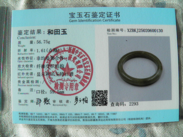 此手镯的鉴定证书照片: |